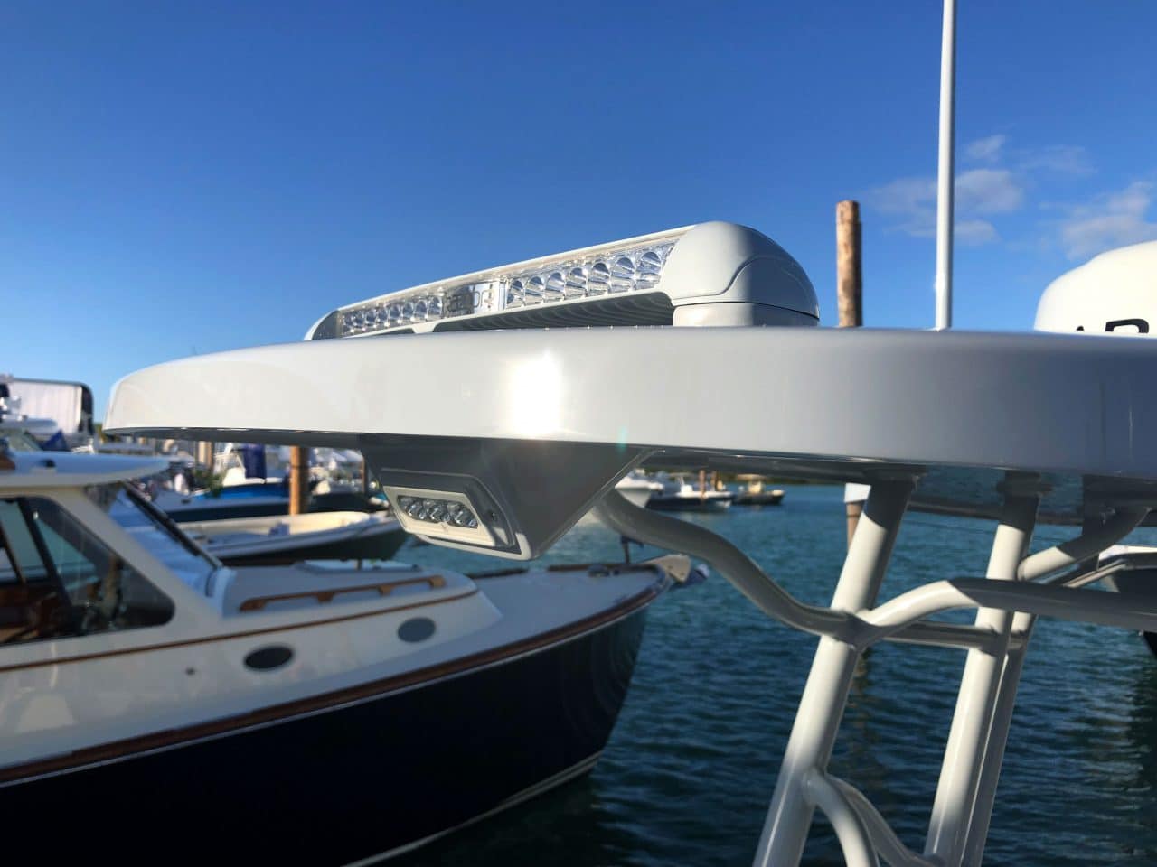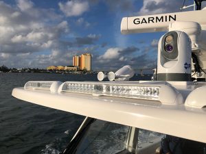 Sleek. Streamlined. Powerful. Razor was carefully designed to be easily integrated into most existing hardtop, arch, and pilothouse design. When mounted facing forward, Razor’s long-throw and high position are invaluable for spotting markers and obstructions. When positioned downward and aft, Razor floods cockpits, gunwales and surrounding areas with more than 10,000 night-piercing lumens.